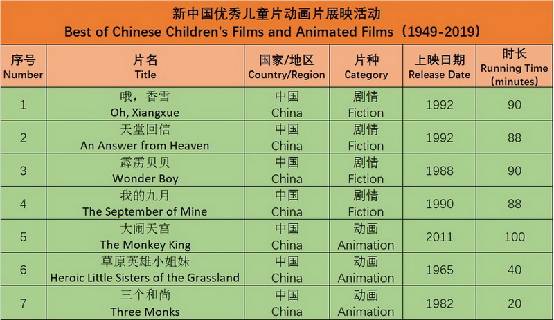 Best of Chinese Children’s Films and Animated Films (1949-2019)